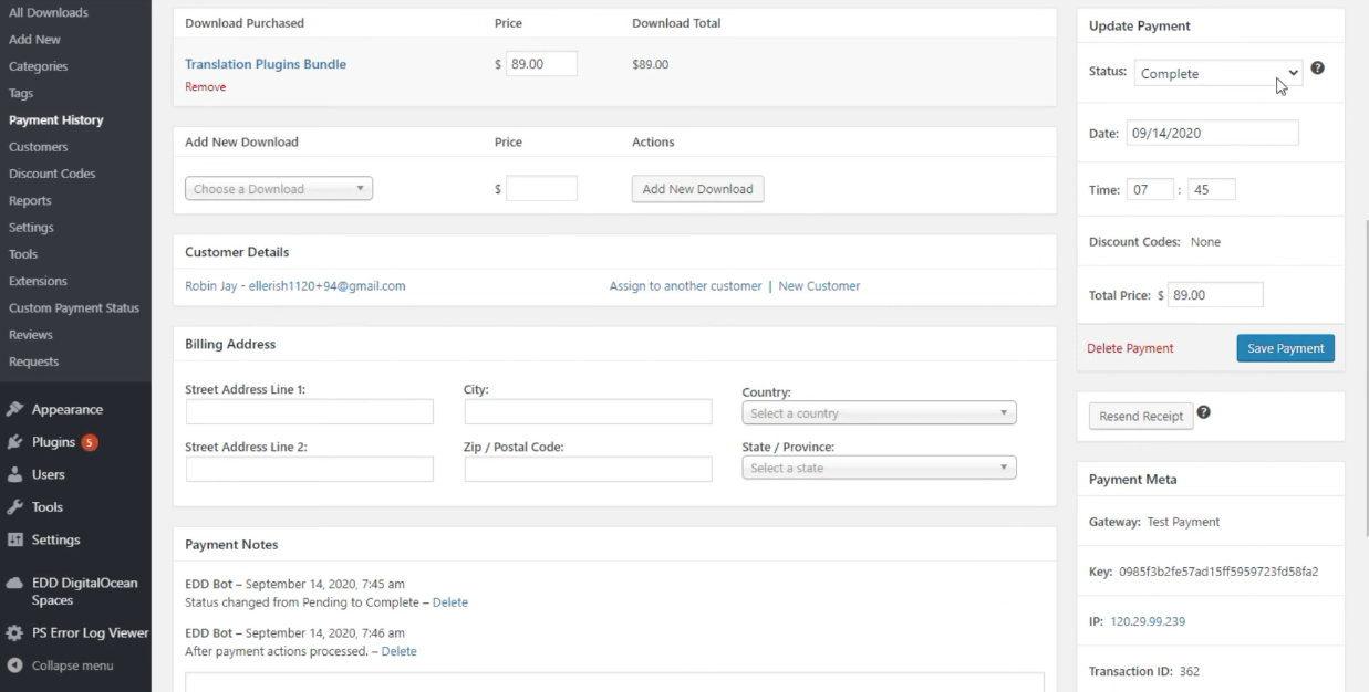 - Full Dashboard Control – Track, manage and view payment logs right inside your EDD admin panel.