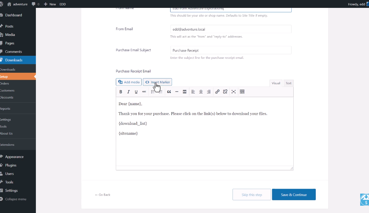 Use the built in EDD template tags (like {name}, {download_list}, {purchase_receipt}, {site_name}) to automatically personalize each message. These tags pull the customer’s information, making every email feel personal without you lifting a finger.