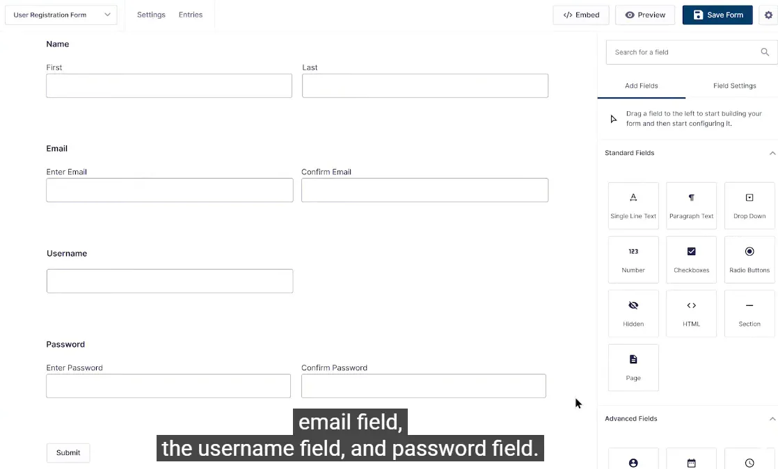 Create forms with the exact fields you need name, email, password, or custom profile data.