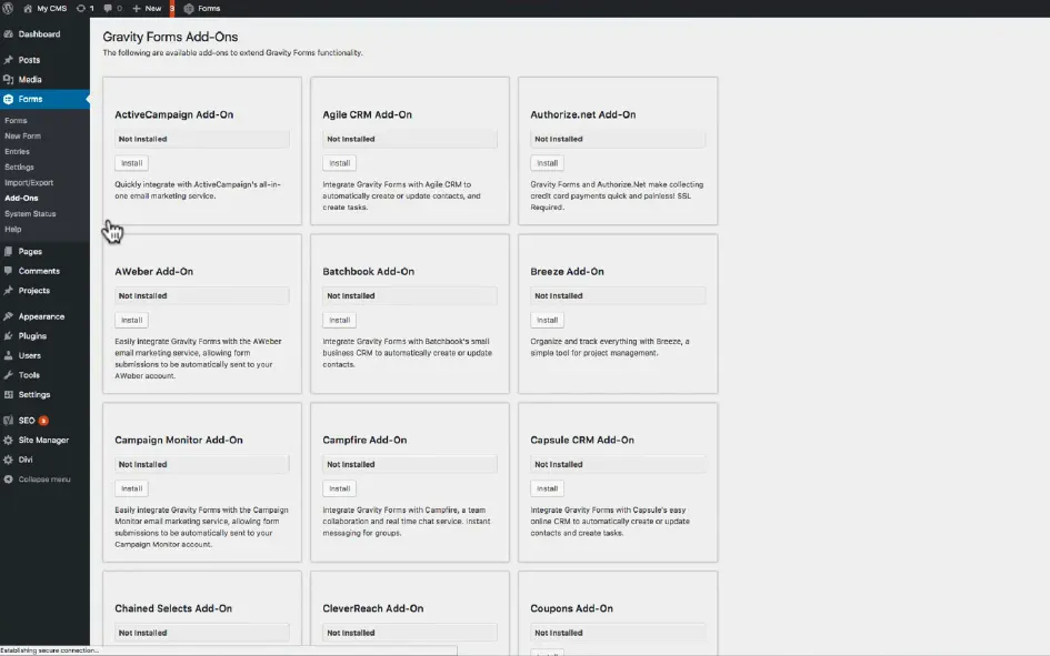 Navigate to Forms > Add Ons.