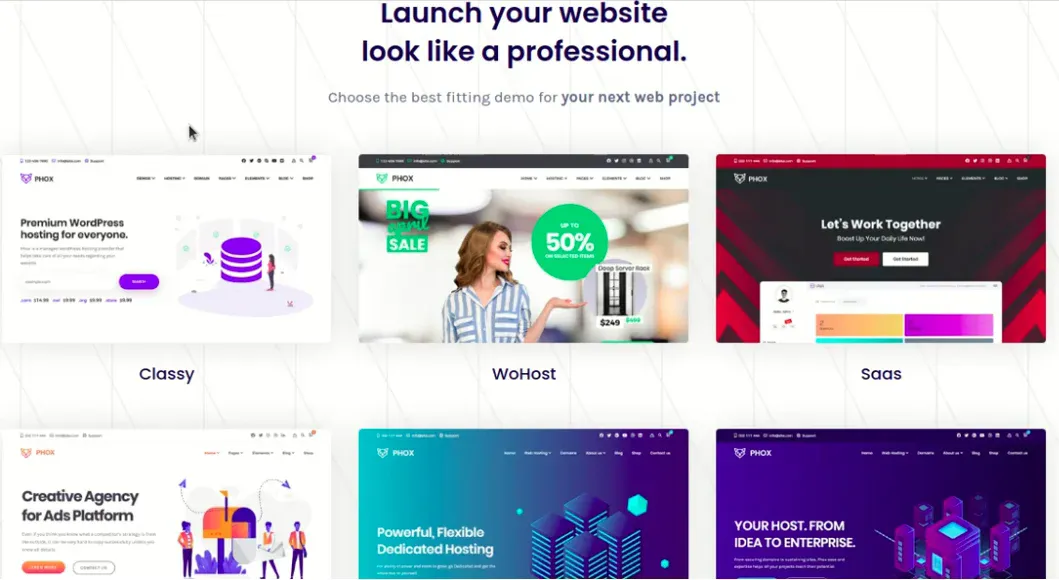 Phox offers a sleek, modern design built to impress hosting and tech audiences. Each layout is carefully crafted for clarity, balance, and visual impact. With over 25 prebuilt demos and 700+ flexible elements, you can customize every page to match your brand’s identity.