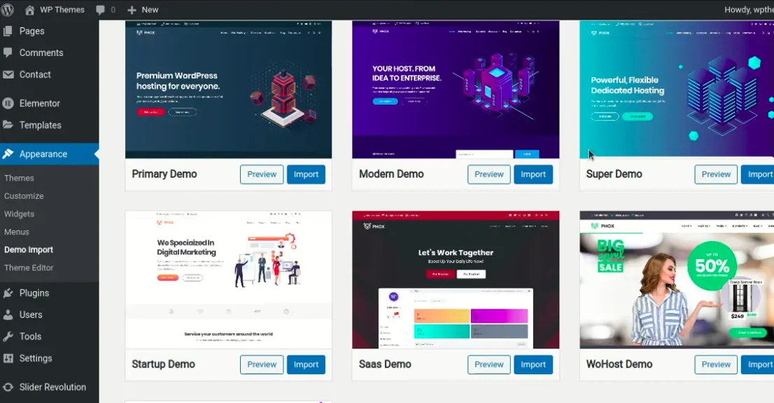 Install Elementor, WooCommerce, and Phox Core plugins.