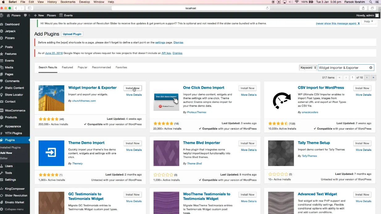One click demo import setup